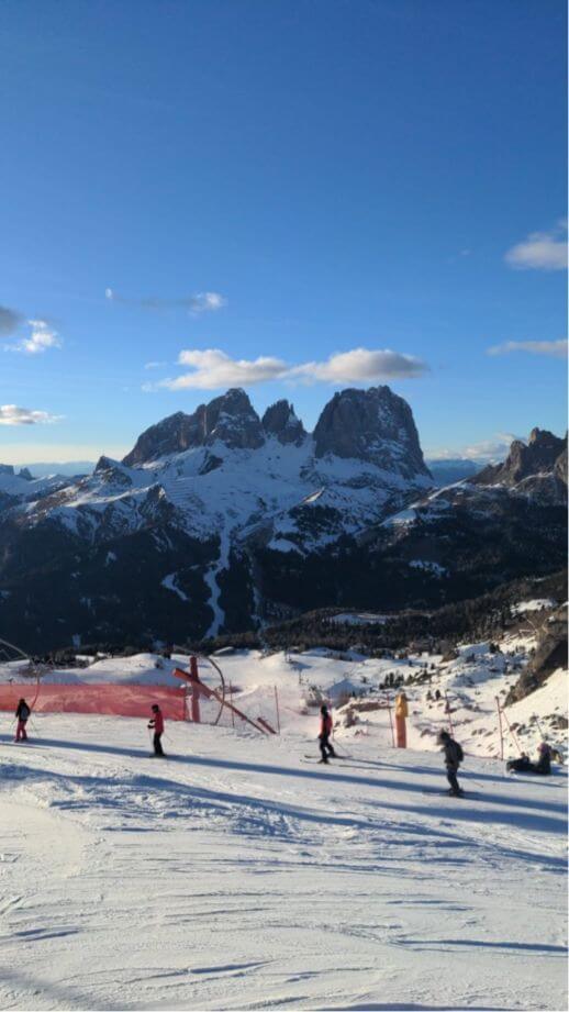In Campitello haben wir den Direkteinstieg am Col Rodella in das Skigebiet. Hier erwartet uns eine neue Umlaufbahn (Fertigstellung Dezember 2025) mit grandioser Kapazität, um 53 Liftanlagen schnell erreichen und 130 Pistenkilometer genießen zu können. Die Skigebiete erheben durchweg den Anspruch roter Pisten und fordert den Skifahrer*innen etwas Kondition ab. Der Linienbus hält direkt vor unserem Hotel, auch ist ein kostenloser Hotel-Shuttle vorhanden.