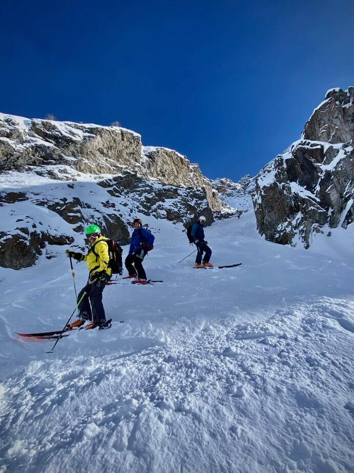 Auch dieses Jahr geht es wieder in das wilde Écrins an die Nordhänge unterhalb von Meije und Râteau. In kleiner Gruppe (maximal 5 Personen) und mit 2 Guides suchen wir die anspruchsvollsten Freerideabfahrten mit bis zu 60 Grad steilen Hängen durch Felsrinnen und über die kilometerweiten Flächen des Glacier de la Girose. Wer hier Schneesport betreibt, muss sein Sportgerät beherrschen!
