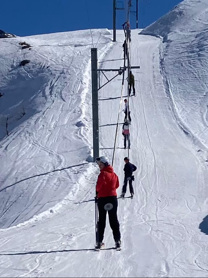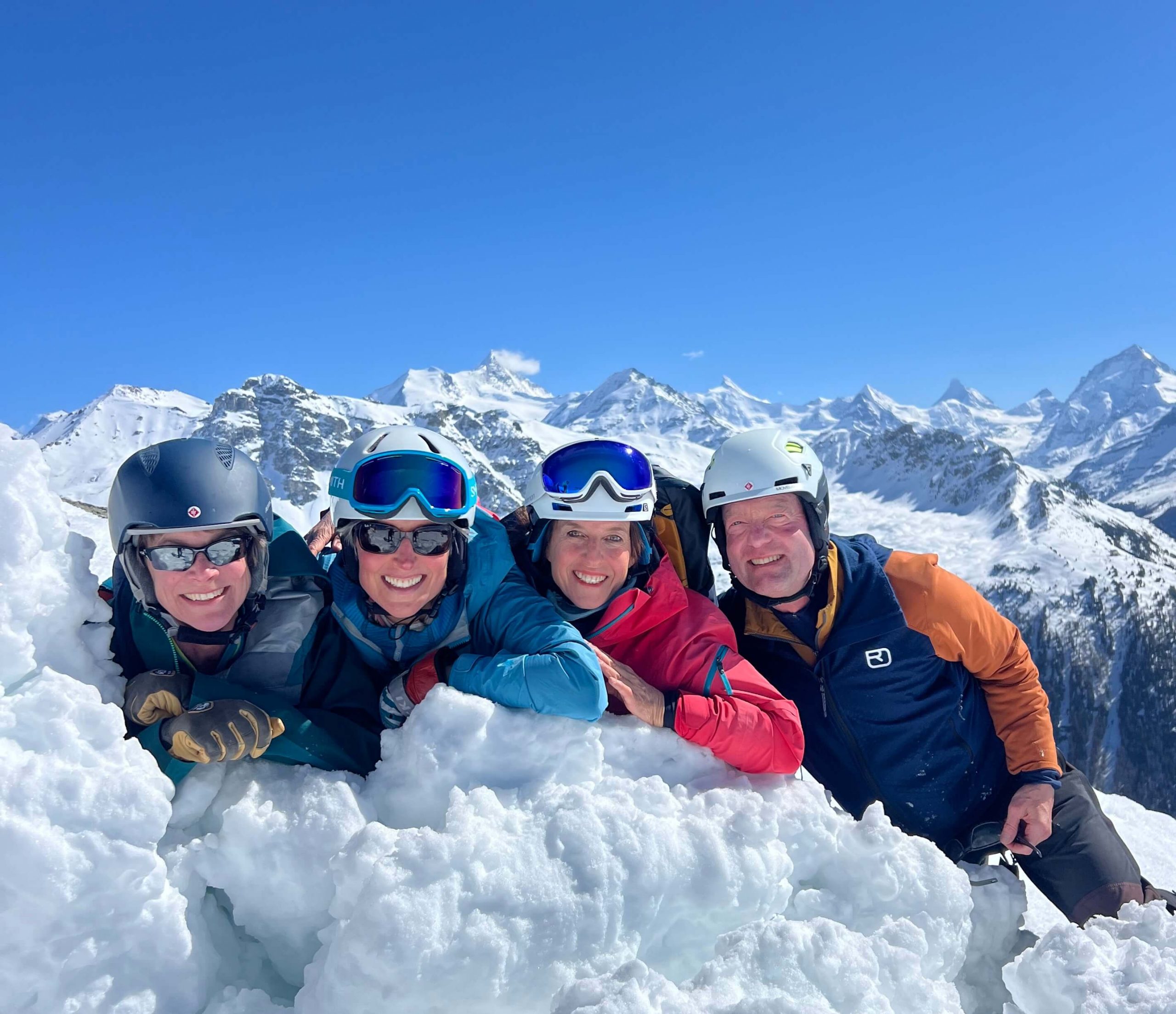 Vormittags treffen sich die 6-7 Skigruppen verschiedener Könnens- und Tempostufen für den intensiven Skiunterricht. Nachmittags fahren wir in selbst gewählten Gruppen, genießen die Weite des Skigebiets und machen ordentlich Höhenmeter – oder chillen noch ein bisschen im Liegestuhl.